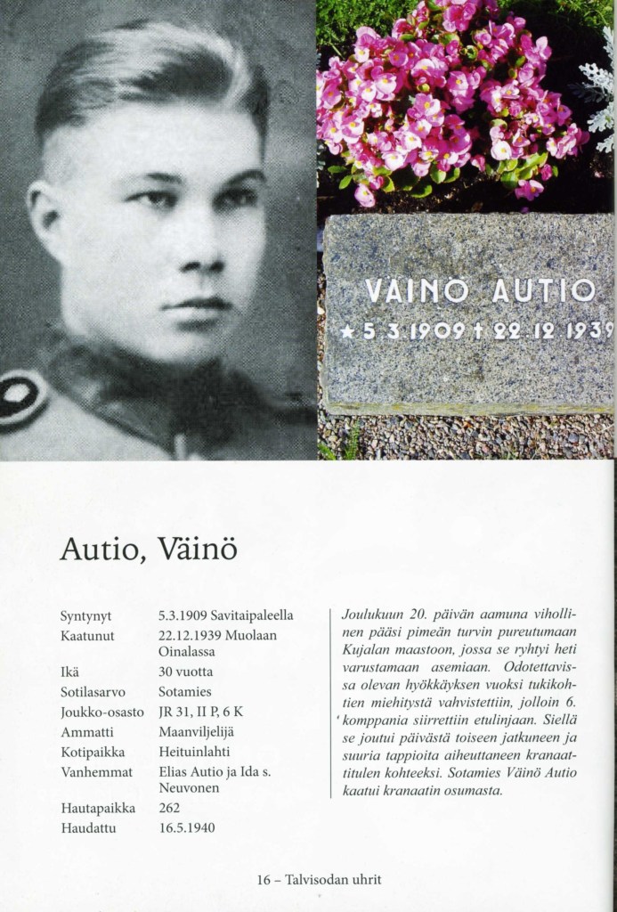 Kirjoitin tämän kirjan kiitoksena ja kunnianosoituksena savitaipalelaisten sankarivainajien muistoksi. Teos sisältää kaikkien 112 talvisodassa ja 178 jatkosodassa kaatuneen tiedot mukaan lukien taistelutilanne, missä kukin heistä kaatui tai haavoittui niin pahoin, että menehtyi haavoihinsa. Melkein jokaisesta sankarivainajasta on myös valokuva, joista näkee, että nuoria ja komeita miehiä Savitaipaleen sankarihautausmaahan on haudattu. Kovakantinen, 393 sivua.